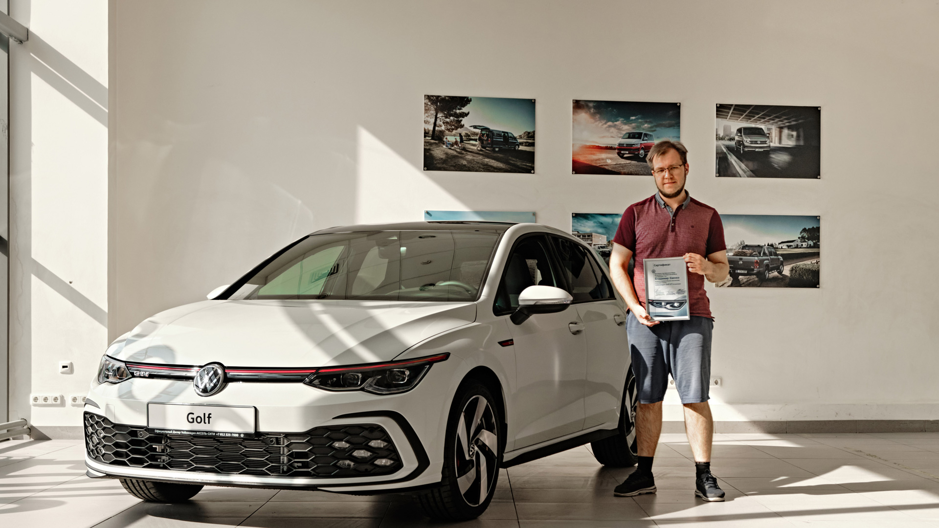 Первым обладателем Golf GTI в России стал Владимир Евенко: «Я мечтал о новом Volkswagen Golf еще с момента выхода Need For Speed: Most Wanted. Этот Golf GTI - мой первый Volkswagen, но и ранее я всегда отдавал предпочтение Volkswagen Group: у меня были Skoda Rapid, Audi A6 C7, Audi A6 C8. Volkswagen Golf я ранее брал в аренду, остался приятный опыт управления дизельным 1.6 на Golf 7. Golf GTI выбрал потому, что у него стильный, дерзкий дизайн и отличная динамика. По большому счету, у этого автомобиля нет конкурентов. Кроме того, я был близко знаком с двигателями этого модельного ряда и знаю, какой у них ресурс и потенциал».