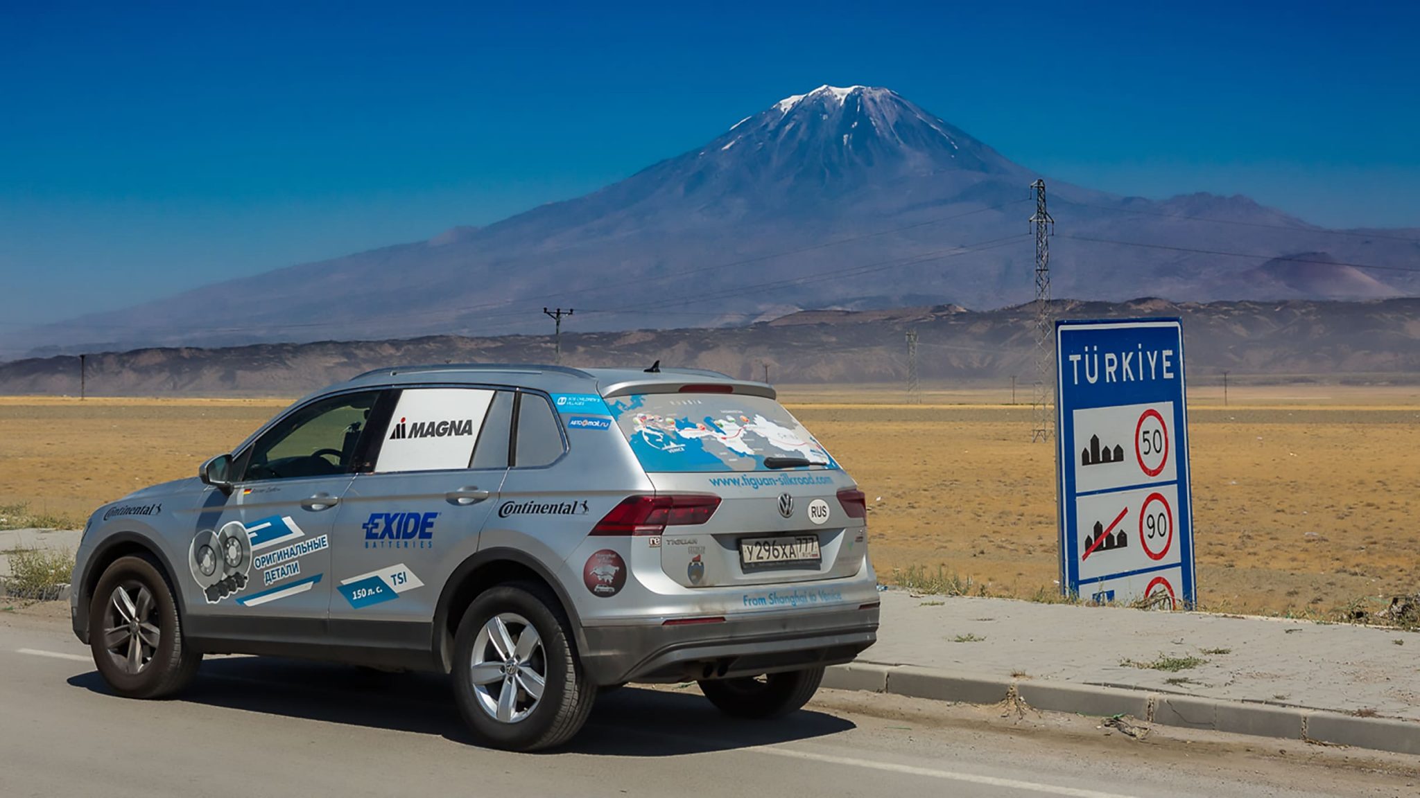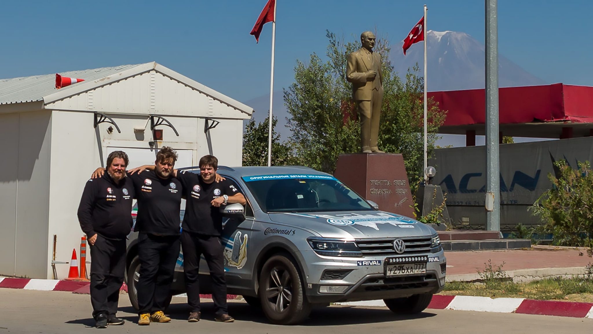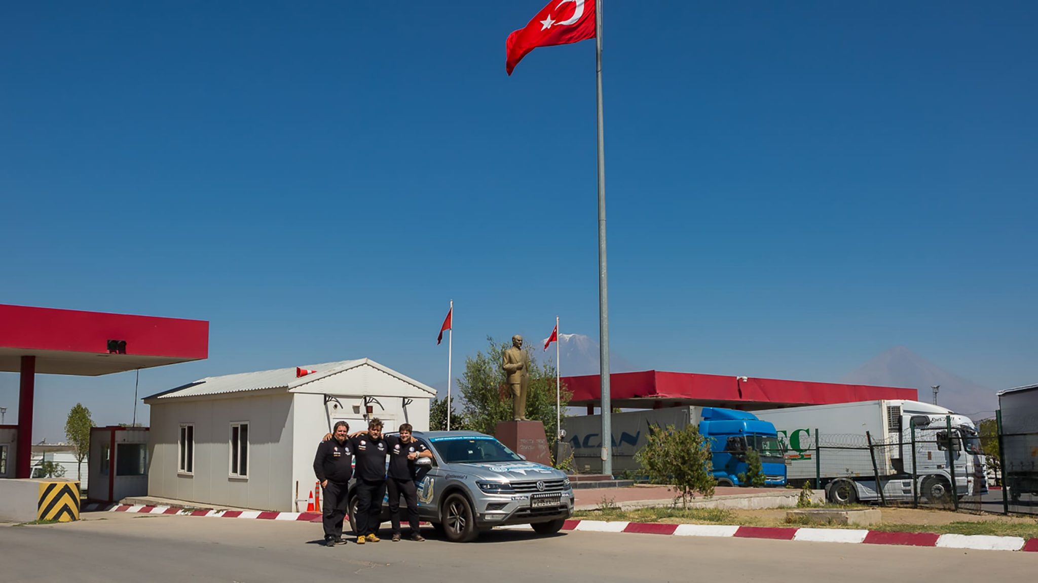 Турция встретила нас жарким солнцем, прекрасными видами на горы и свободными дорогами. Мы не удержались и сделали еще несколько снимков на фоне величественной горы Арарат! Единственной проблемой при пересечении Турции было найти местную сим-карту с доступом в Интернет — тут мало кто говорит по-английски, а мы, в сожалению, совершенно не говорим по-турецки. Конечно, у нас был разговорник, с помощью которого мы могли сказать что-то, но что нам отвечали мы не могли разобрать. Нас спас наш знакомый Аккар из местного дилерского центра Volkswagen — он присоединился к нам и помогал решить все проблемы, связанные с коммуникацией. Теперь мы можем и позвонить, и загрузить сделанные фото!